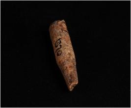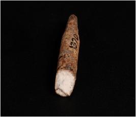 | Description / विवरण | Handmade bone point, dark brown in colour. Half of it circular and other half roughly elliptical cross-section. Both ends damaged and smooth surface, well polished. |