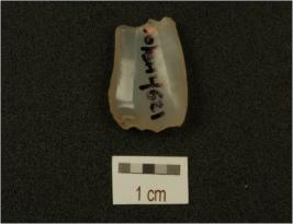 | Description / विवरण | A fluted core made on chaledony flake scars on surface. |