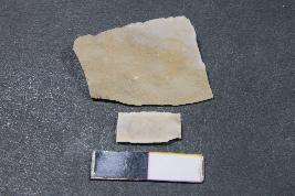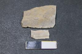 | Description / विवरण | Fragment of a blade with two dorsal ridges having smooth surface. |