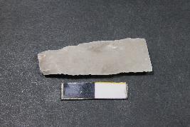 | Description / विवरण | A fragment of a blade having two dorsal ridge with bulb of percussion. It has smooth surface. |