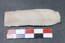 | Description / विवरण | A blade having two dorsal ridges with bulb of percussion. It has smooth surface. |