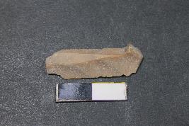 | Description / विवरण | A fragment of a blade having two dorsal ridges with bulb of percussion. It has smooth surface. |
