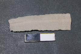 | Description / विवरण | A fragment of a blade having two dorsal ridges. It has smooth surface. |