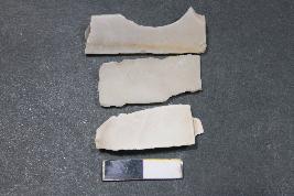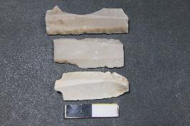 | Description / विवरण | Fragments of blades having two dorsal ridges with bulb of percussion in one of them. One of them is 2.9cm in length and 1.2cm in breadth.They have smooth surface. |