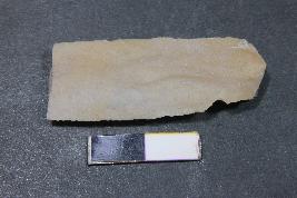 | Description / विवरण | A fragment of a blade having two dorsal ridges with bulb of percussion. It has smooth surface. |