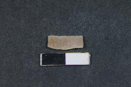 | Description / विवरण | Fragment of blade with one dorsal ridge and smooth surface. |