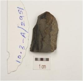 | Description / विवरण | Core made on chert with blade scars on dorsal. |