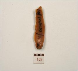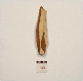 | Description / विवरण | A blade of chert ridge on the dorsal side use marks on working edges and bulb an ventral with cortex on dorsal. |