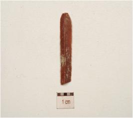 | Description / विवरण | A chert blade with prominent bulb on the ventral side and two ridges on the dorsal side with sharp working edges. |