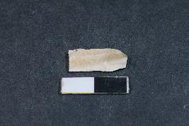 | Description / विवरण | Fragment of a blade with two dorsal ridges and a bulb of percussion on ventral side having smooth surface. |