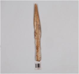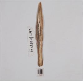 | Description / विवरण | A arrow head made of bone, broken pointed tip and well polished. |