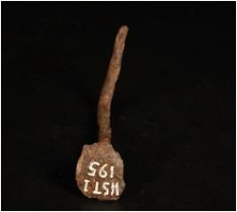 | Description / विवरण | Iron Nail with round section has a flat circular head. Lower part is bent and rusted. |
