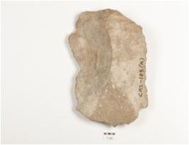| Description / विवरण | An utilized flake tool made on chert, prepared platform, diffused bulb on ventral side, two flake scars on dorsal side with cortex partly intact and use marks along with the cutting edges. |