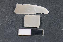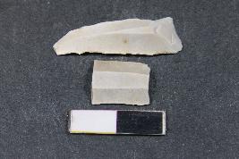 | Description / विवरण | Fragment of blade having one dorsal ridge and rough surface. The smaller fragment have two dorsal ridges. |