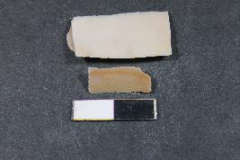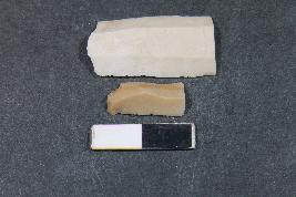 | Description / विवरण | Fragment of blade having two dorsal ridges and rough surface. The smaller fragment has one dorsal ridge. |