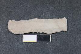 | Description / विवरण | Fragment of blade having two dorsal ridges and rough surface. |