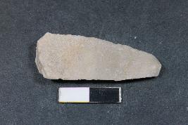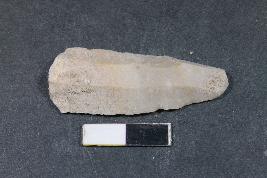 | Description / विवरण | Fragment of blade having two dorsal ridges and rough surface. |