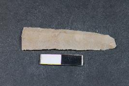 | Description / विवरण | Fragment of blade having two dorsal ridges and rough surface. |