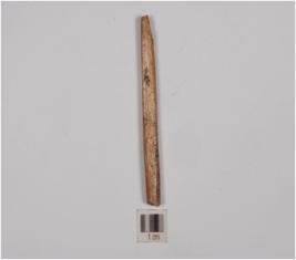 | Description / विवरण | A bone point with a pointed working and broken end, has smooth and polished surface and plano convex cross section. |