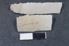 | Description / विवरण | Fragments of blade having one dorsal ridge and rough surface. The longer blade has bulb of percussion on ventral side. |
