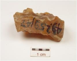 | Description / विवरण | A flake made on carnelian, cortex remained on surface. |