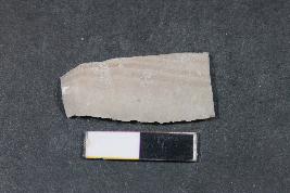 | Description / विवरण | Fragment of blade having two dorsal ridges, bulb of percussion on ventral side and rough surface. |