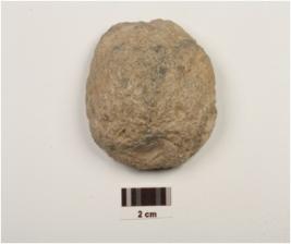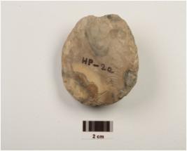 | Description / विवरण | A pebble made on chert, flake scars on one side. |