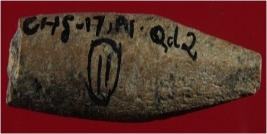 | Description / विवरण | Trench A- 1, Qd 2, Depth 230 cm, Layer 11 This is a broken bone point. It is a pointed object. Surface is smooth and colour of object is brown. |