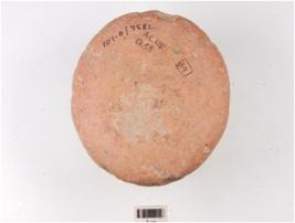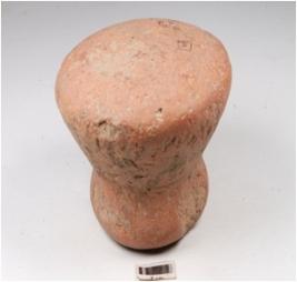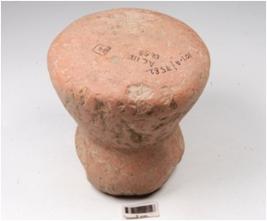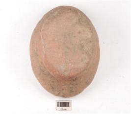 | Description / विवरण | A handmade terracotta dabber, flat circular top, convex circular bottom, slightly damaged surface and treated with red slip. |
