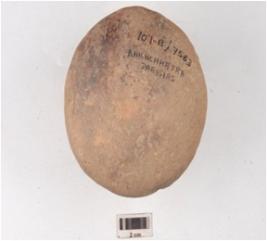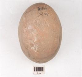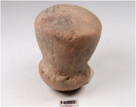 | Description / विवरण | A handmade terracotta dabber circular convex top and circular convex bottom hour glass like vertical section and treated with red slip. |