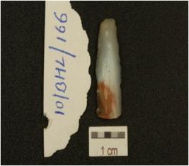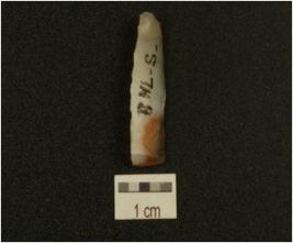 | Description / विवरण | A balde made on chalcedony, has ridge on dorsal side, prepared platform, prominent bulb on ventral side, triangular cross-section and use markes along the cutting edges. |