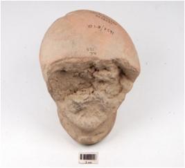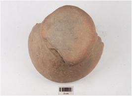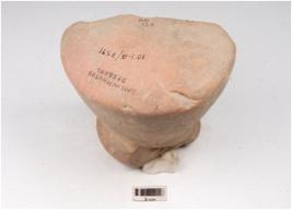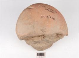 | Description / विवरण | A handmade terracotta dabber, flat circular top, convex circular bottom, longitudinally broken, surface treated with red slip, hour glass like vertical section. |