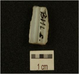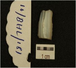 | Description / विवरण | Fragment of core made on Chalcedony, three blade scars and prepared platform. |