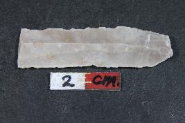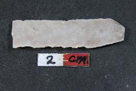 | Description / विवरण | Fragment of blade with two dorsal ridge and positive bulb of percussion onits ventral side having smooth surface. |
