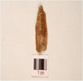 | Description / विवरण | A blade made on chert ridge on dorsal use marks on edges and knife shaped |