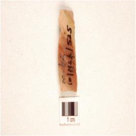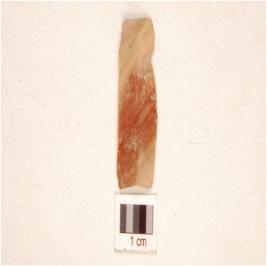 | Description / विवरण | A parallel sided blade made on chert mid-ridge and dorsal use marks on edges and prominent bulb on ventral. |