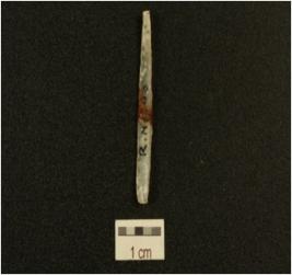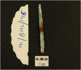 | Description / विवरण | A point made on chalcedony, blade scars on dorsal side, prepared platform, and prominent bulb on ventral side. |