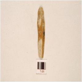 | Description / विवरण | A knife blade made on chert mid-ridge on dorsal use-marks on edges and diffused bulb on ventral. |