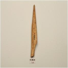 | Description / विवरण | A point made on bone, pointed broken with one end and other end is broken. |