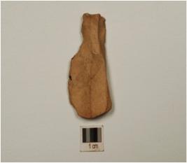 | Description / विवरण | A fragment of flake made on chert, flake scars on the dorsal side, use wear marks along the cutting edges. |