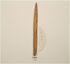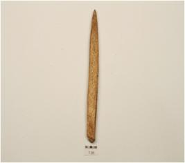| Description / विवरण | A point made on bone, broken with one end and ponited with other end. |