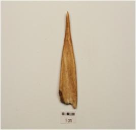 | Description / विवरण | A point made on bone, pointed with one end and broken from other end. |