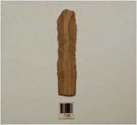 | Description / विवरण | A blade made on chert, prominent bulb on the ventral side prepared platfrom on proximal end, mid ridge on the dorsal side, use wear marks along the cutting edges. |