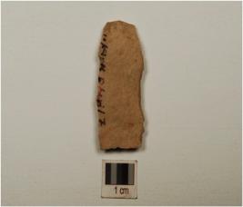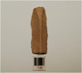 | Description / विवरण | A fragment of blade made on chert, midridge on the dorsal side, use wear marks along the cutting edges. |