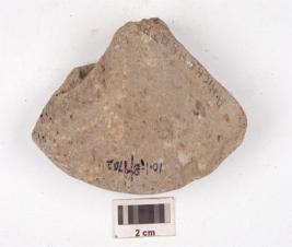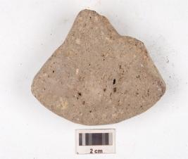 | Description / विवरण | A fragment of terracotta skin rubber partly broken, flat surface and well baked. |
