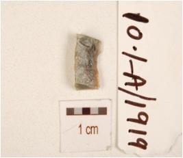 | Description / विवरण | Fragment chert blade with triangular cross section and use-wear marks along the cutting edge. |