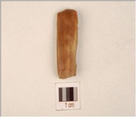 | Description / विवरण | A flake made on chert flake scars on surface, irregular edges and shape. |