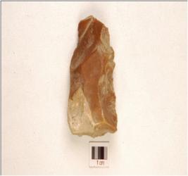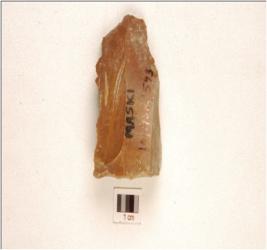 | Description / विवरण | A core made on chert flake scars on surface, irregular edges and surface. |