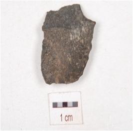 | Description / विवरण | A stone utilized flake with cortex retained on the surface and use-marks an edges. |
