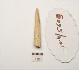 | Description / विवरण | A fragment of bone point, pointed along one end and circular cross section. |